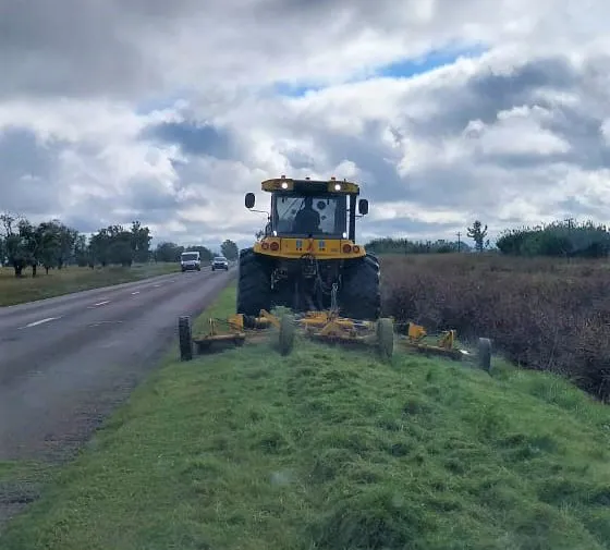 Los trabajos en ejecución comprenden el corte de pasto de banquinas con tractor y desmalezadora de arrastre. Esta mañana el frente de tareas avanza sobre RN 178, desde el empalme con RN 33 en Chabás hacia Bigand.
